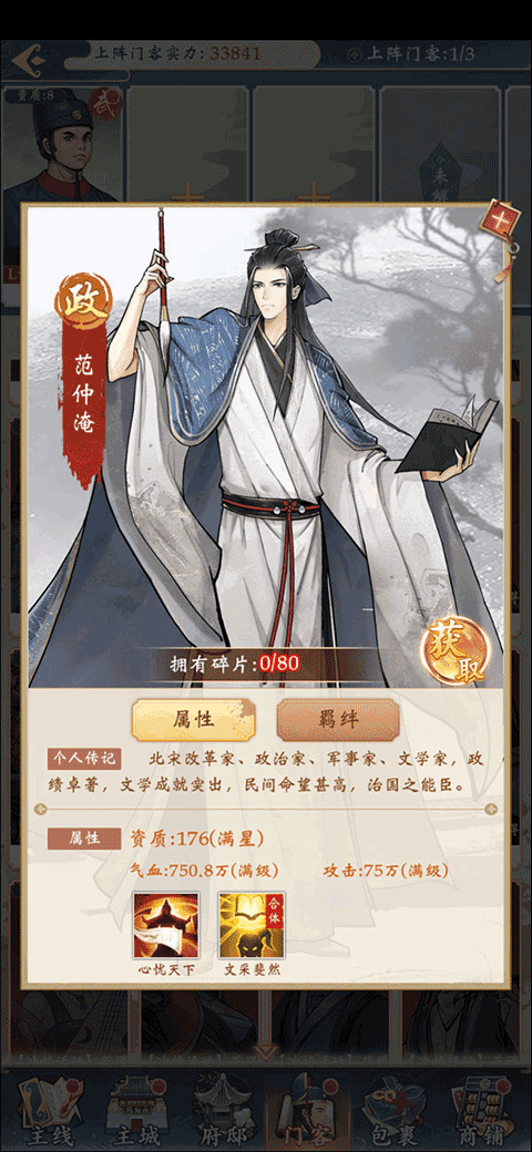 红色门客苏轼、范仲淹、欧阳修、王安石、司马光、文天祥这六人,彼此之间大多存在羁绊,但与橙色或紫色门客关联较小。若要启用,最好能凑齐这六人。