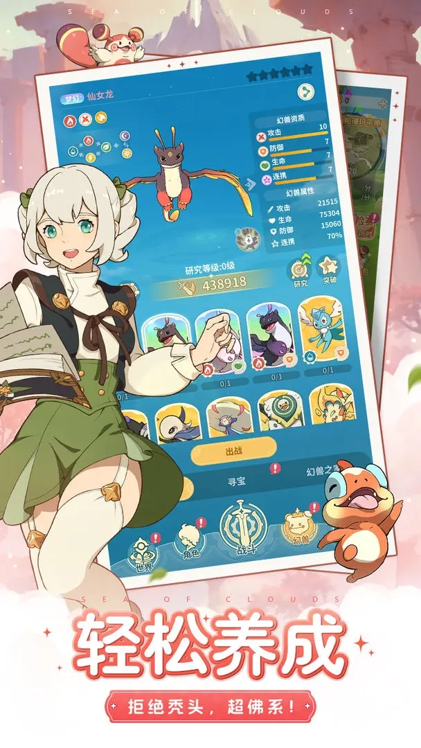 游戏中拥有数十种幻兽,它们不仅能够进行合成与升星操作,还能参与离线打工获取收益。在战斗过程里,幻兽与各类职业技能(如具备火、草、水、电等元素相克特性)会共同构成连携策略,这无疑对玩家的战术搭配能力提出了考验。