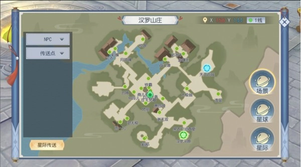 Npc、怪物和传送点寻路:点击区域地图列表中某个对象进行寻路。主界面右上角地图按钮,就能进行传送了。