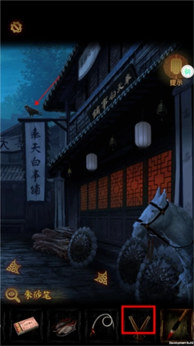 20、方府管家来访,解锁新地图,用上个谜题得到的弹弓,攻击屋檐上的鸟,得到纸人丢失的另一半耳环