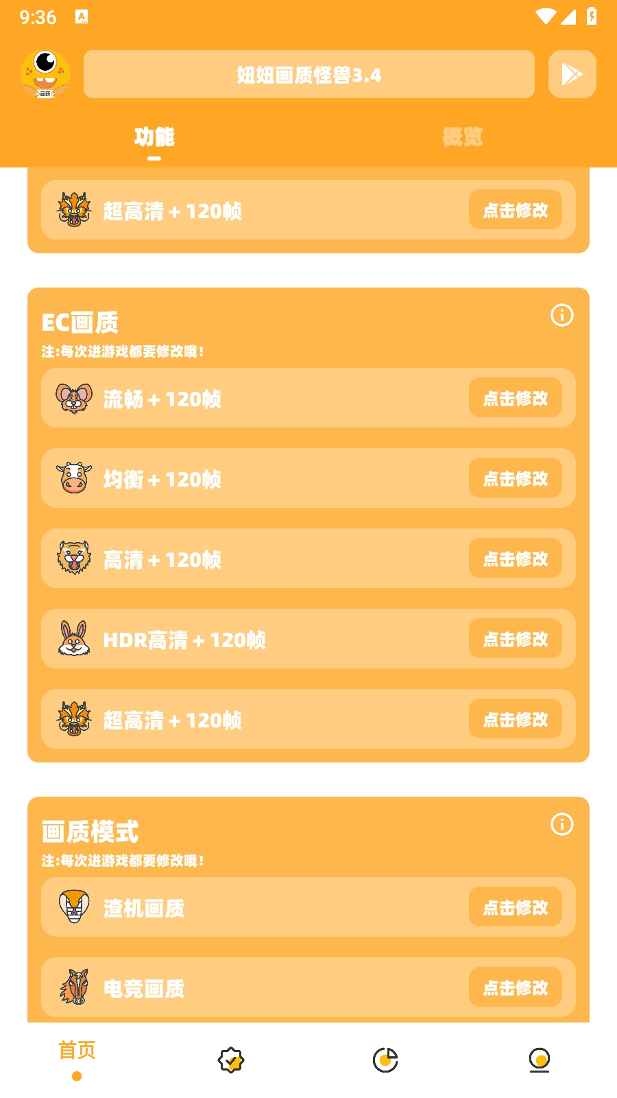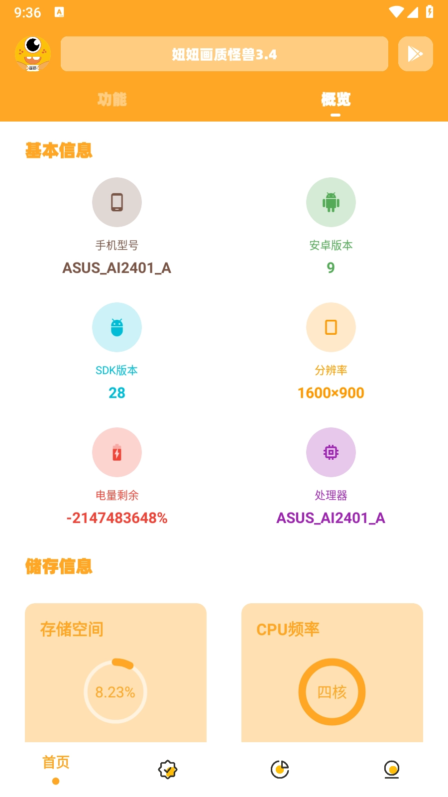1、打开妞妞画质怪兽App,允许开启悬浮窗等权限