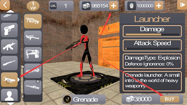 3、进入商城后可以看见已经内购的货币数量,选取自己喜欢的枪支,点击BUY进行购买