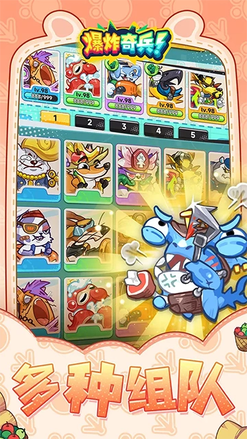 爆炸奇兵是一款非常精彩的策略类,游戏中采用了精美治愈的卡通画面风格设计,加入了有意思的合成玩法,大量的萌宠也会等待您的收集,分为射击和策略两个元素,玩家注意控制角色发射炮弹来击败对手,包括1v1、2v2等游戏模式,顺利的进行闯关。当然游戏的挑战还是富有乐趣的,您还需要掌握炮弹的发射角度和力度是取胜的关键,每一个可爱的萌宠都会等待您的收集,它们有着或可爱、或搞怪的外形,让人爱不释手,趣味的组队方式,享受刺激的热血战斗,完成英雄的进化,获取强大的战斗实力了。感兴趣的玩家就不要错过了,随时都能游戏尽情的畅玩。