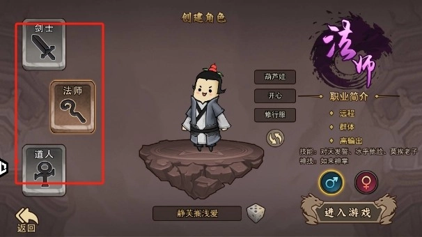 2、进入游戏后,在游戏界面的左侧,您会看到多种职业角色可供挑选。每个角色都具备独特的技能与背景故事,选择一个契合您个性的职业吧!