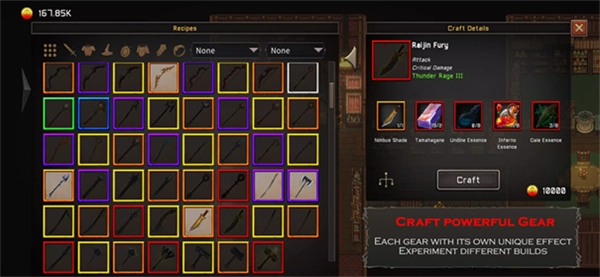 打造武器、盔甲以及神器,以此提升你角色的属性。
