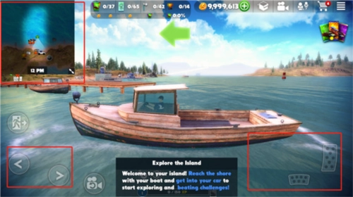2. 玩家进入游戏后,会置身于船上。此时,可利用左边的按键操控方向,借助右边的按键来控制油门与刹车。