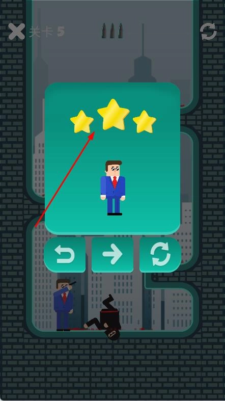 3、成功战胜敌人,获得星级评定,点击箭头按键,进入下一关,持续挑战更多有趣的射击关卡。