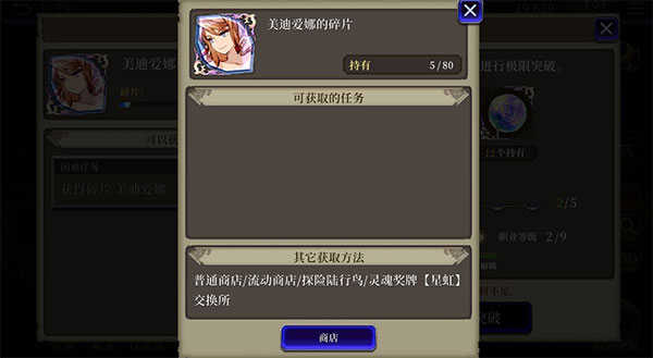 2、前往商店购买角色碎片,可购入120片。每天下午,商店刷新出新角色碎片的几率较高,但这得碰运气。另外,旧的角色pickup也会不定期在商店上架。