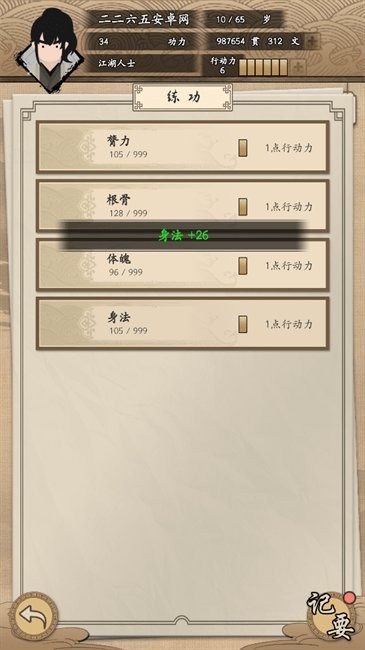 7、功力提升后,点击右下角的“记要”