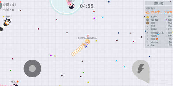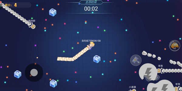 在游戏界面里,玩家左手操作圈负责移动与改变方位,右手边掌控加速技能的释放与停止。释放加速技能会消耗小蛇少量长度,需留意对技能释放的把控。