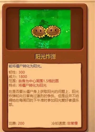 特点:可将僵尸转化为阳光