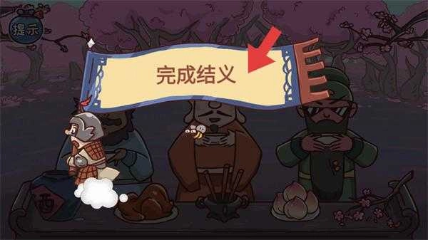 4、当各项准备工作均已完成,界面会显示已成功完成结义,达成桃园结义的游戏目标。此时,玩家可选择继续体验后续游戏内容,或者进入全新的环节。