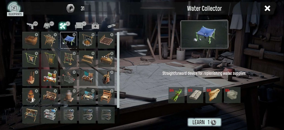 首先,你得搭建一个集水器。要知道,要是没有淡水,你根本无法生存。