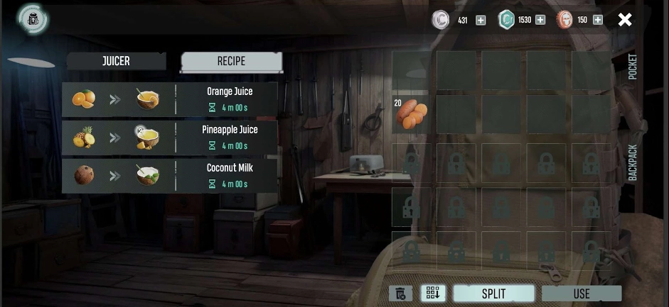岛上栽种着大量香蕉、橙子与菠萝。你既能够收集后直接食用,也可以在家打造一台榨汁机,用它们来榨取果汁。通过榨汁机,你能得到橙汁、菠萝汁以及椰奶。