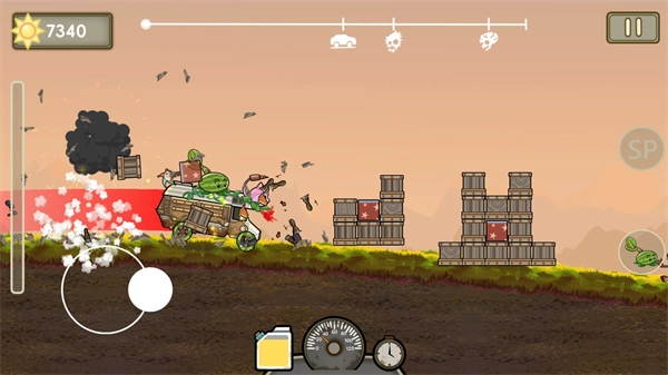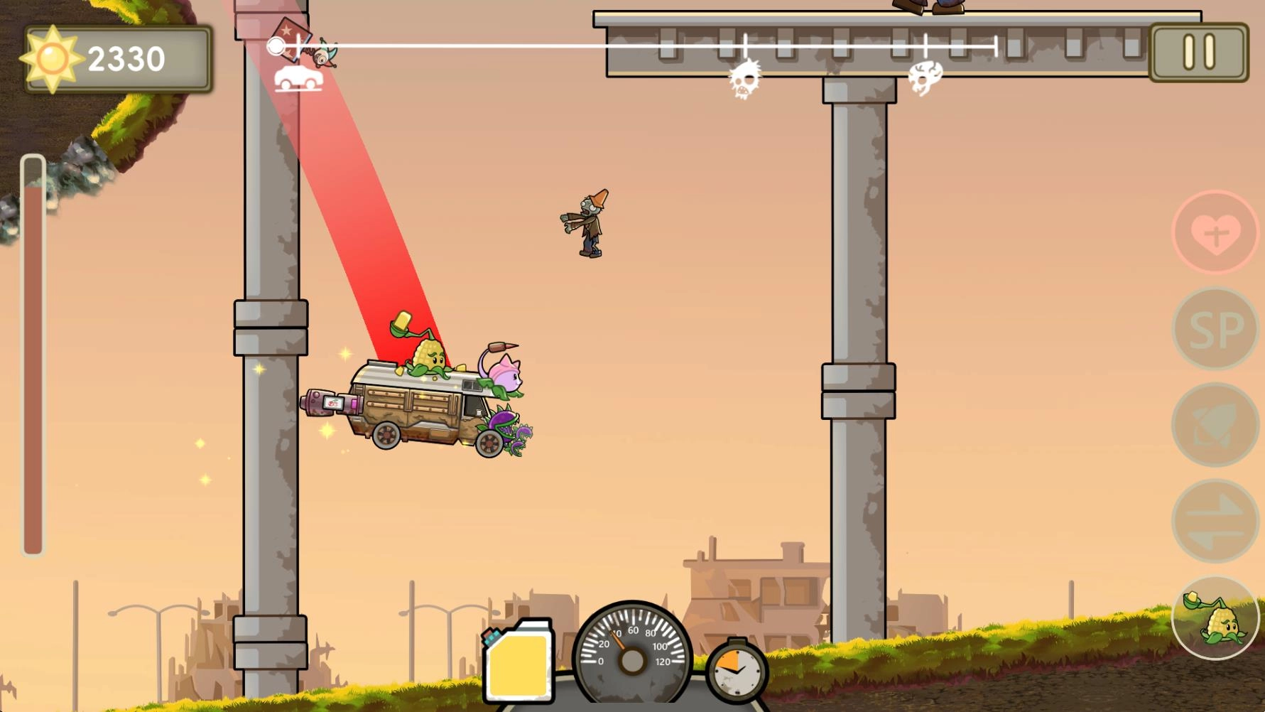 3、不断驾驶植物战车,击败游戏中沿途的僵尸大军