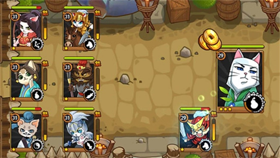 《三国喵喵传》里有4个兵种,它们之间是环形克制关系。根据下一场战斗中敌方的兵力布置,合理调整我方武将的出战位置,就能在有限的战场空间里对敌人造成最致命的打击。