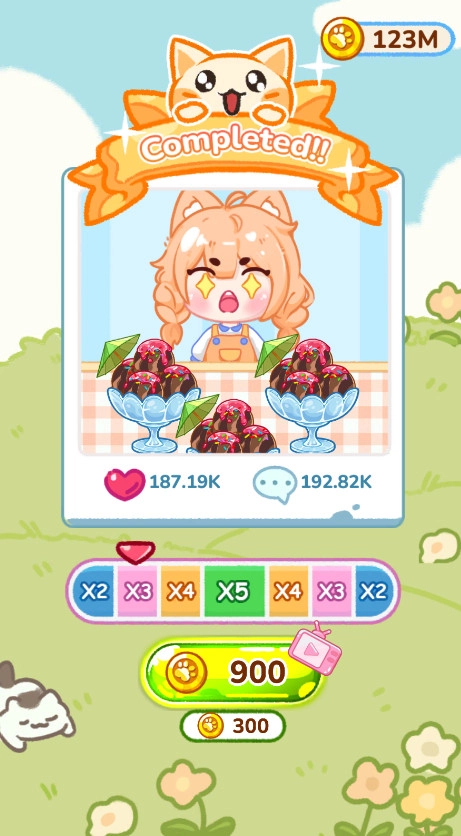 趣味挑战任务:完成吃播任务,吸引更多粉丝,解锁新道具和服装,让咪咪的吃播事业越来越红火!