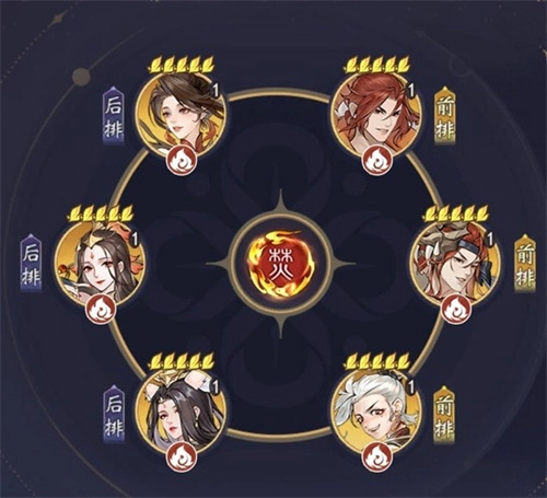 可以把九凤、九尾和毕方安排在阵容的后排位置,前排则部署重黎、狰、辱收这三张肉盾卡牌来守护后排。借助九尾的增伤效果,再搭配九凤与毕方能够覆盖双位置的全体输出能力,以此实现快速打出高额伤害的目标。