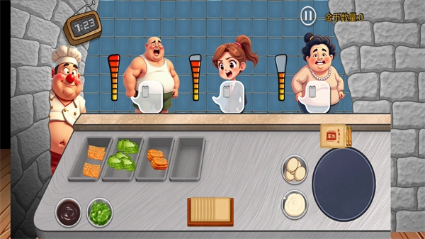 沉浸式的游戏体验:游戏采用精致的卡通画风,构建出一个充满趣味的美食世界。此外,搭配魔性的背景音乐与有趣的动画效果,让玩家沉浸于烹饪和经营的乐趣之中。