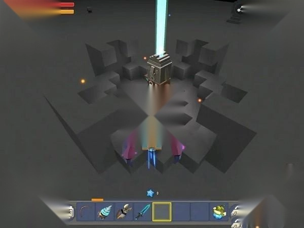 等一切都准备好后,玩家就可以乘坐飞船来到萌眼星,在远古巨人图腾前后左右四格的地方分别放上四种不同的方块,其中蓝钻块放在图腾的正面,紫荧石块放在图腾的背面,孔雀石块和星铜石块分别放在两边。