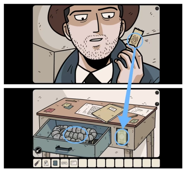 回到那间没有光线的房间,把软管连接到吸尘设备上并启动它,然后用裁纸刀划开布袋取出那张卡片,之后返回二楼右边的房间,用卡片解锁金属柜,点击里面的纸张资料就会触发后续情节。