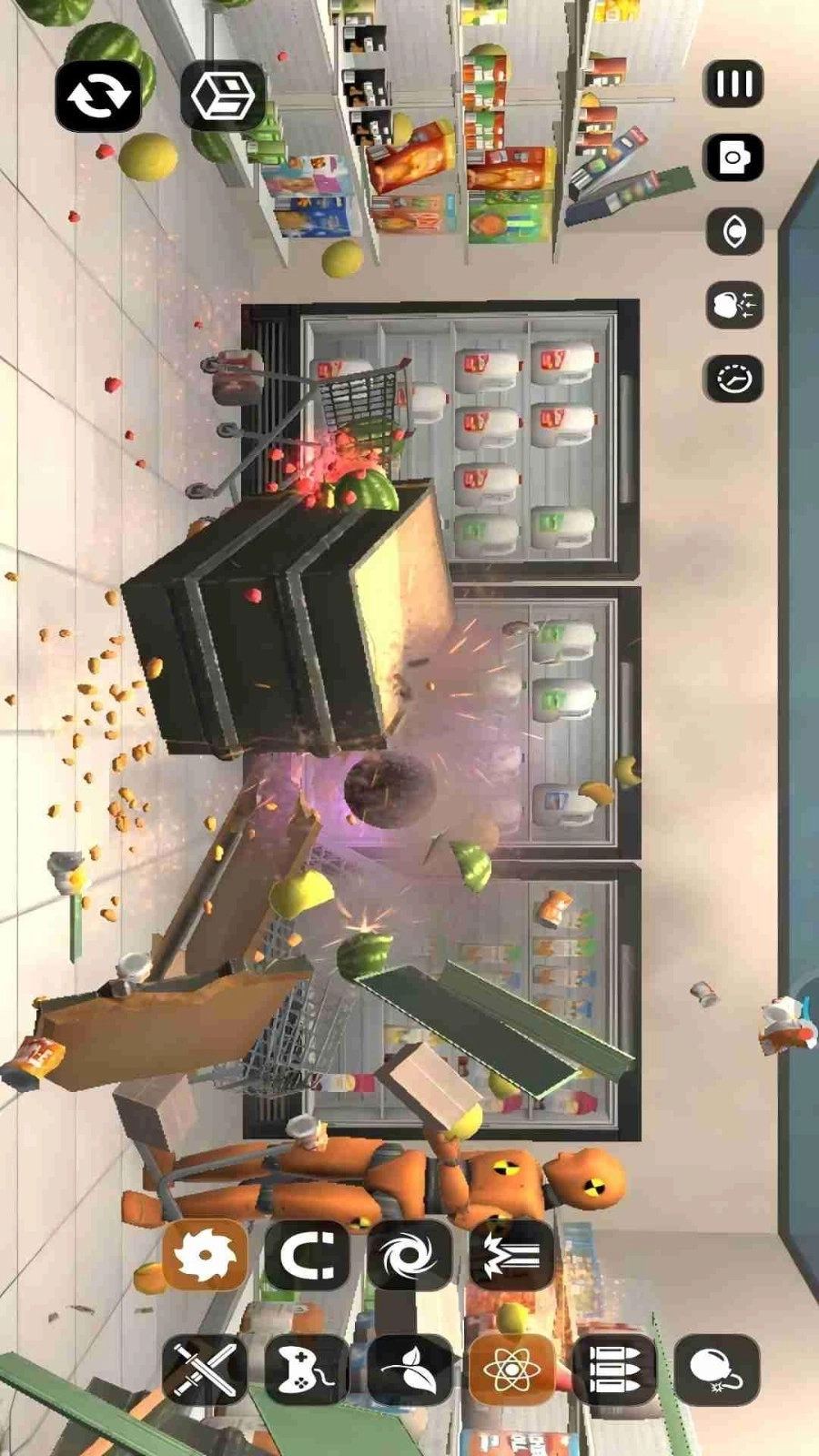 玩家可以挑选各类物品与游戏道具,操控机器人在多样场景中执行破坏任务,全力摧毁视野内的所有物品。游戏还设置了超市、地铁、酒吧等不同场景,让玩家能轻松开启挑战。