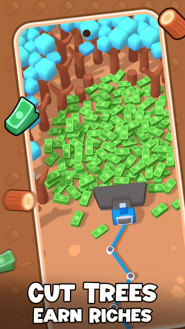 这是一款围绕伐木展开的经营模拟游戏,玩家将化身伐木工,借助操作伐木机械来完成资源采集,并推动经营规模的拓展。