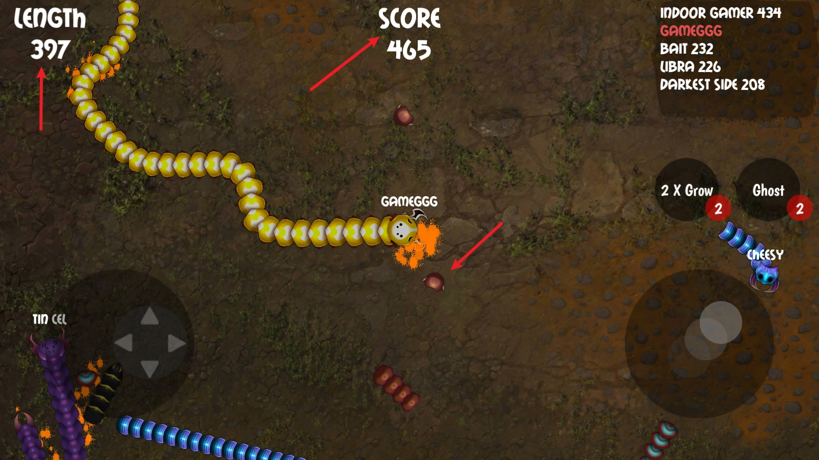 和贪吃蛇不同,在这个游戏里我们能够直接攻击其他蜈蚣,还能把它们从中间截断。