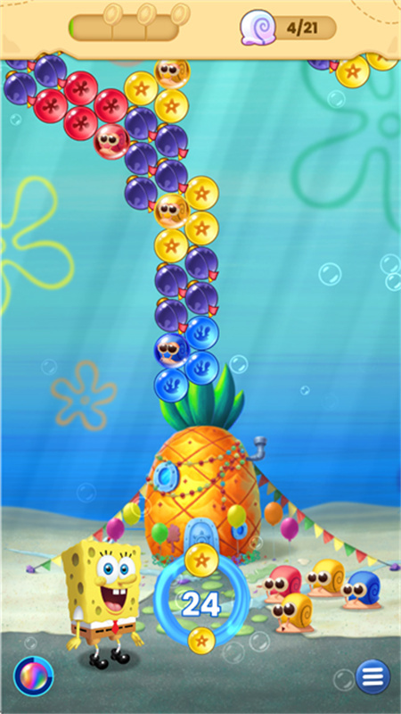 海绵宝宝泡泡爆破是一款休闲解压类游戏,以海绵宝宝为背景,玩家将在此展开一系列挑战:炸毁所有泡泡关卡,清除各类主题障碍物,完成特色挑战内容。游戏包含超多剧情故事,还提供各种解谜小工具,支持离线游玩,让你随时随地享受解谜过程。每个关卡都有不一样的挑战,玩家还能用手气挑战娃娃机,赢取更多服装以解锁新技能。