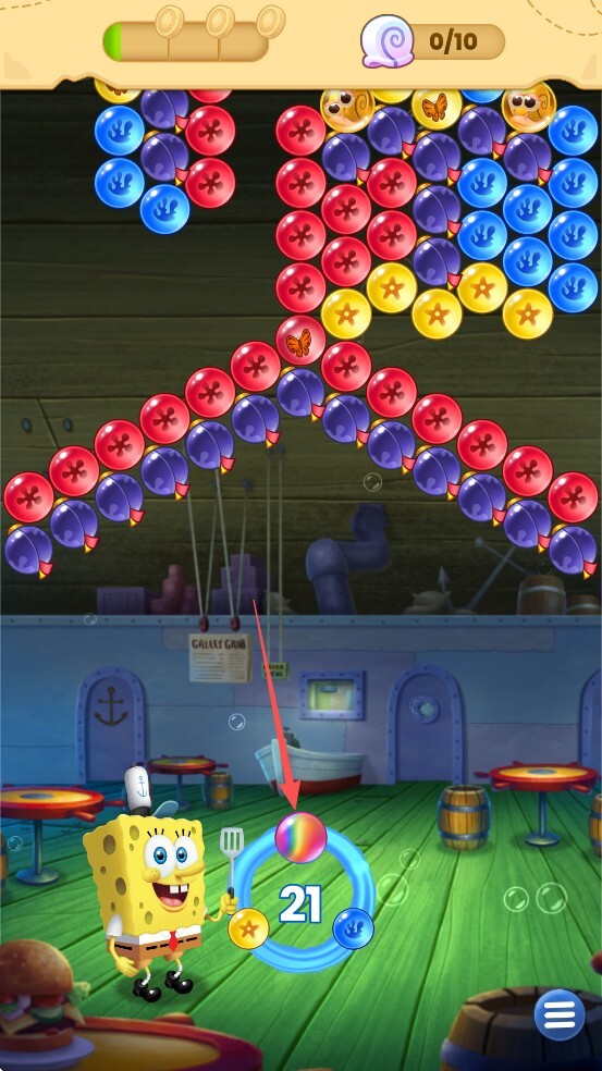 通过配对颜色来爆破泡泡,救出海螺,让比奇堡恢复往日的秩序。使用泡泡枪时,一定要精准瞄准哦!