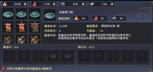 锻造坊能够打造帮会地盘战所需的各类道具;