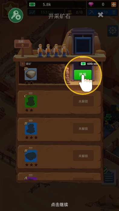 前提还要安排工人,再次点击屏幕上的采矿的图标。