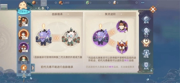 要拥有一只战力超群的元兽伙伴并非易事,离不开我们的用心培育。在游戏里,借助属性培养、唤生、聚灵等途径都能增强元兽的战力。我们可以通过重塑资质、摄星解锁属性、提升悟性这三种方式,多维度提升妖灵的各项属性。