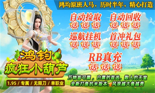 鸿钧疯狂小葫芦是一款独具特色的玛法传奇游戏。玩家将在这片神秘大陆开启一段梦幻征程,通过持续提升角色等级来获取强大力量。游戏中设置了众多创新副本,为玩家带来一场场精彩的战斗体验。