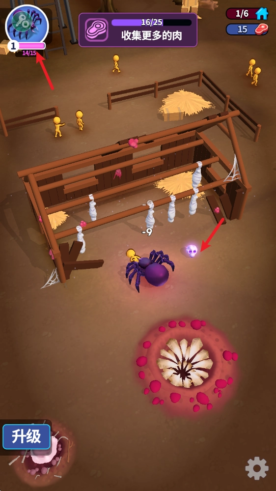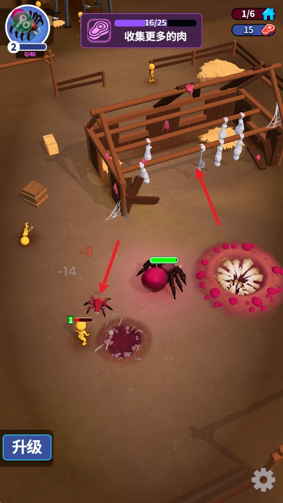 收集的肉资源还可以用来升级你蜘蛛的属性。