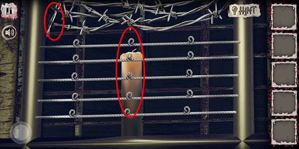 走到窗台边,我们能看到蜡烛和一根钢丝。先把所有钢丝都向上拉,再从下方抽出蜡烛,之后点击旁边就能拿到钢丝了。