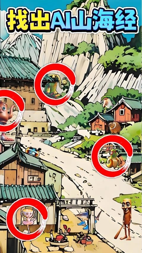 《找茬挑战王》是一款充满奇思妙想的休闲找茬游戏!在国风水墨画卷里,寻找隐藏其中的外国AI山海经角色。这是一场眼力的大考验!仔细观察画面的每一处细节,找出并解锁AI山海经生物图鉴吧。快来挑战你的观察力极限!