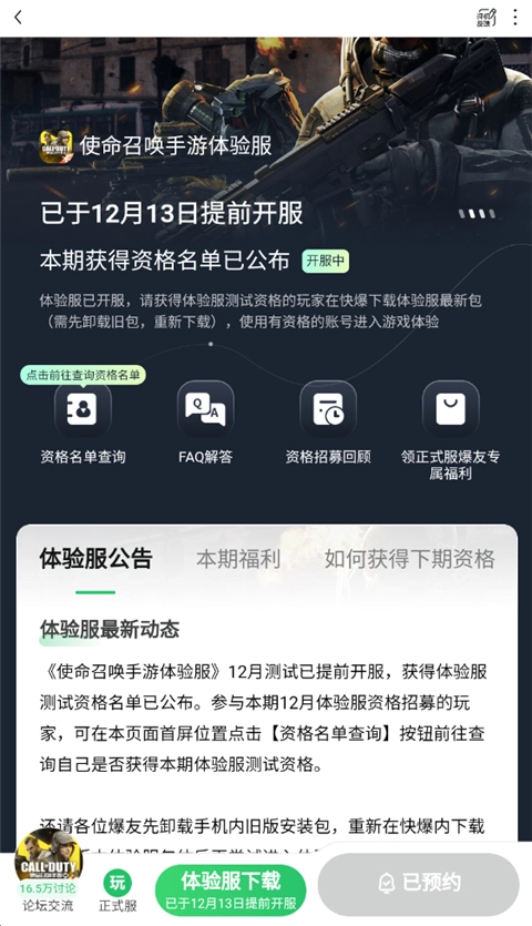 通过好游快爆搜索使命召唤体验服界面进行申请。