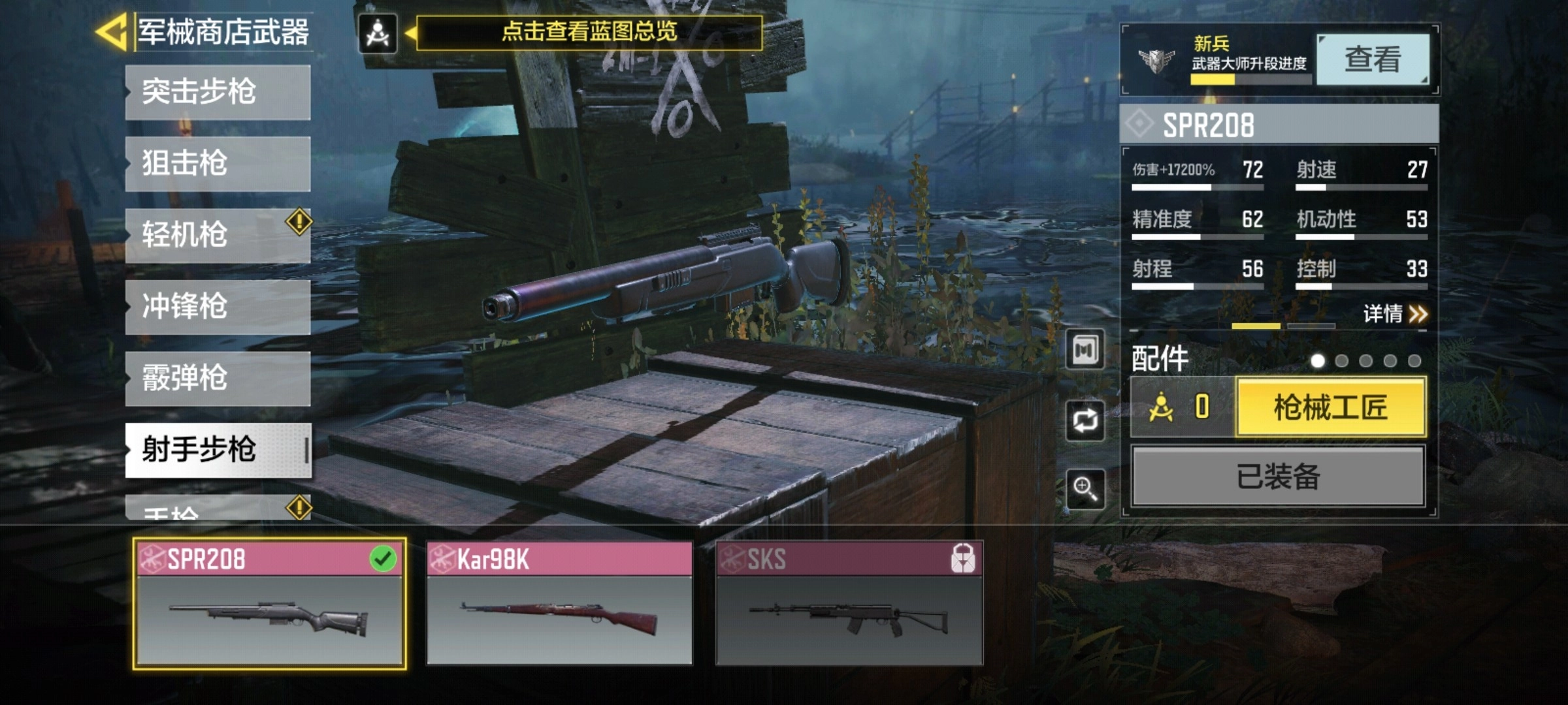 核心枪匠配件选择突击枪托与射手长枪管,整体以提升稳定性为主要方向。