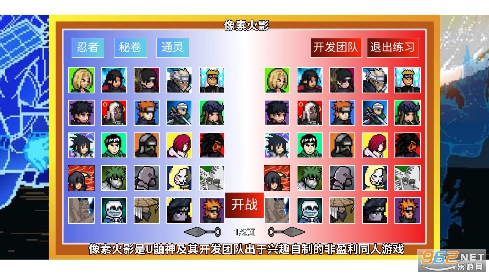 《像素火影(仙自九鸣)最新版》 在像素火影的最新版本里,你能体验多样的游戏模式,自由挑选不同的火影角色展开战斗。游戏高度还原了火影忍者中各角色的经典忍术,还设有强者挑战、试炼等特色模式,为你带来更丰富有趣的游玩体验,感兴趣的话不妨来尝试一番!