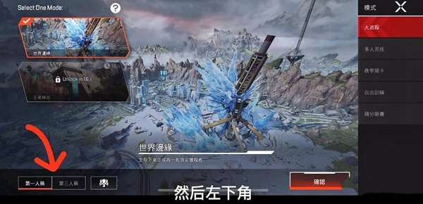 进入游戏后,玩家能在左下角找到【第一人称】和【第三人称】的选项,所有模式下的视角人称切换功能都设置在此处。当玩家点击【第三人称】选项后再进入游戏,视角就会切换为第三人称视角。