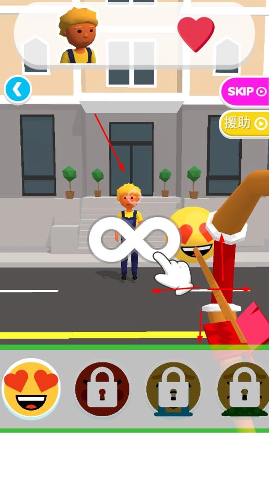 按照提示点击对应的表情,比如爱心眼表情,把它释放到目标人物身上,就能触发互动效果,从而推进游戏进程。