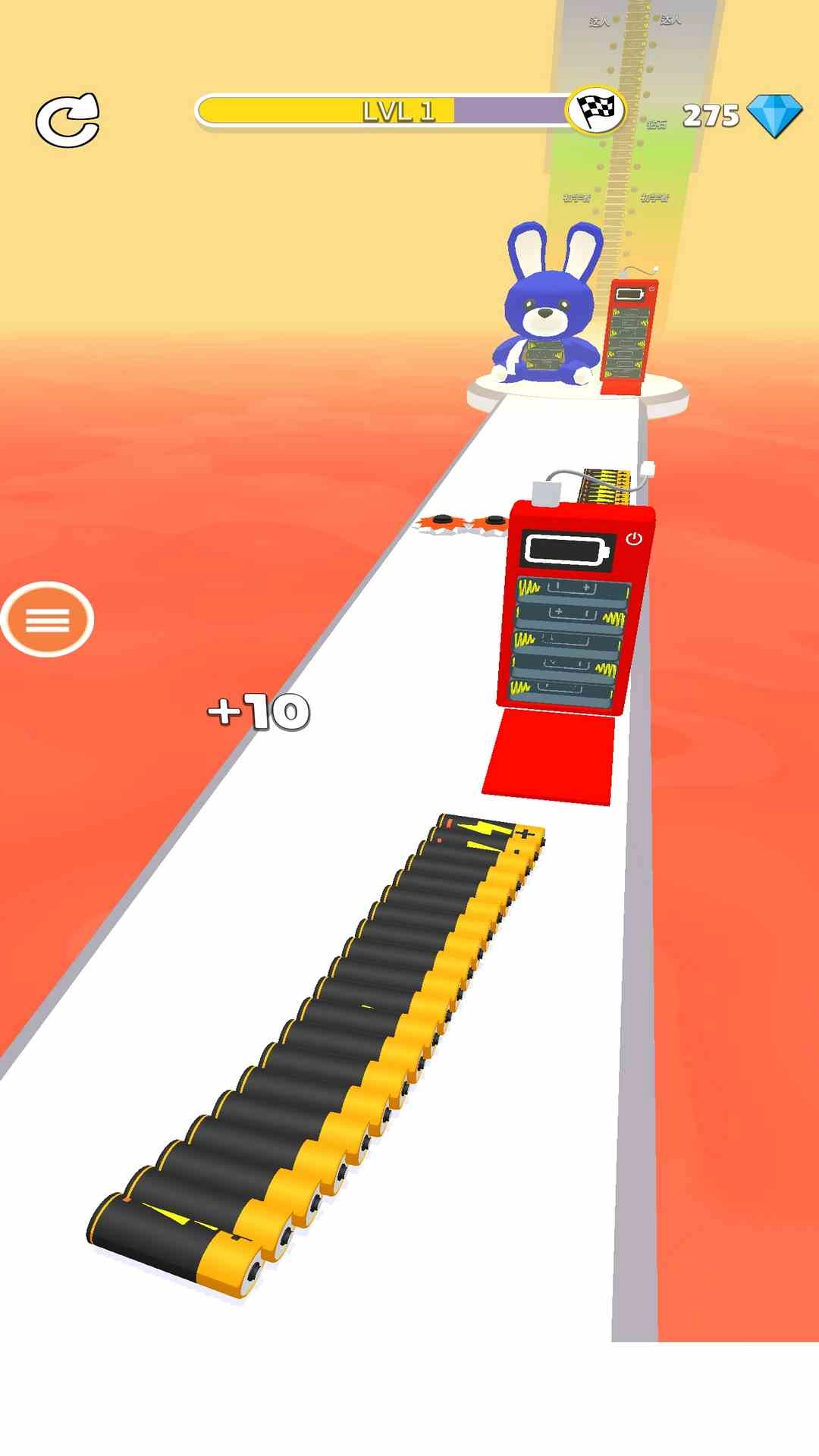 玩家要在规定跑道里尽可能多地收集散落的电池,这会直接左右最终冲刺的评价以及关卡奖励,进而构建出“收集—强化—通关”的良性循环。