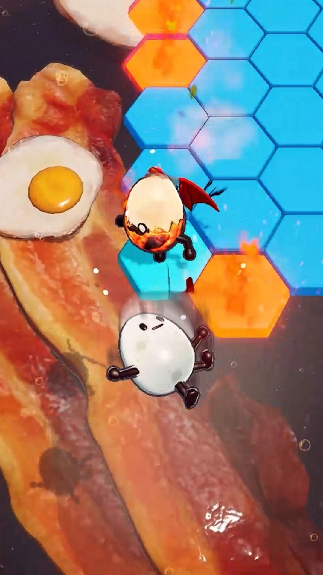 自身的蛋处于危险边缘时,可以通过连续小幅度碰撞来调整位置,逐步向煎锅中心移动,以此远离掉落的风险,重新掌控对战的节奏。