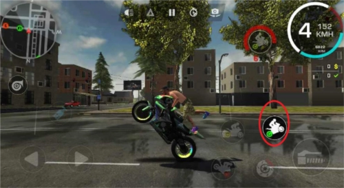 右边第二个按钮需和驾驶键搭配使用,能让摩托车车头翘起,从而完成前进特技动作。