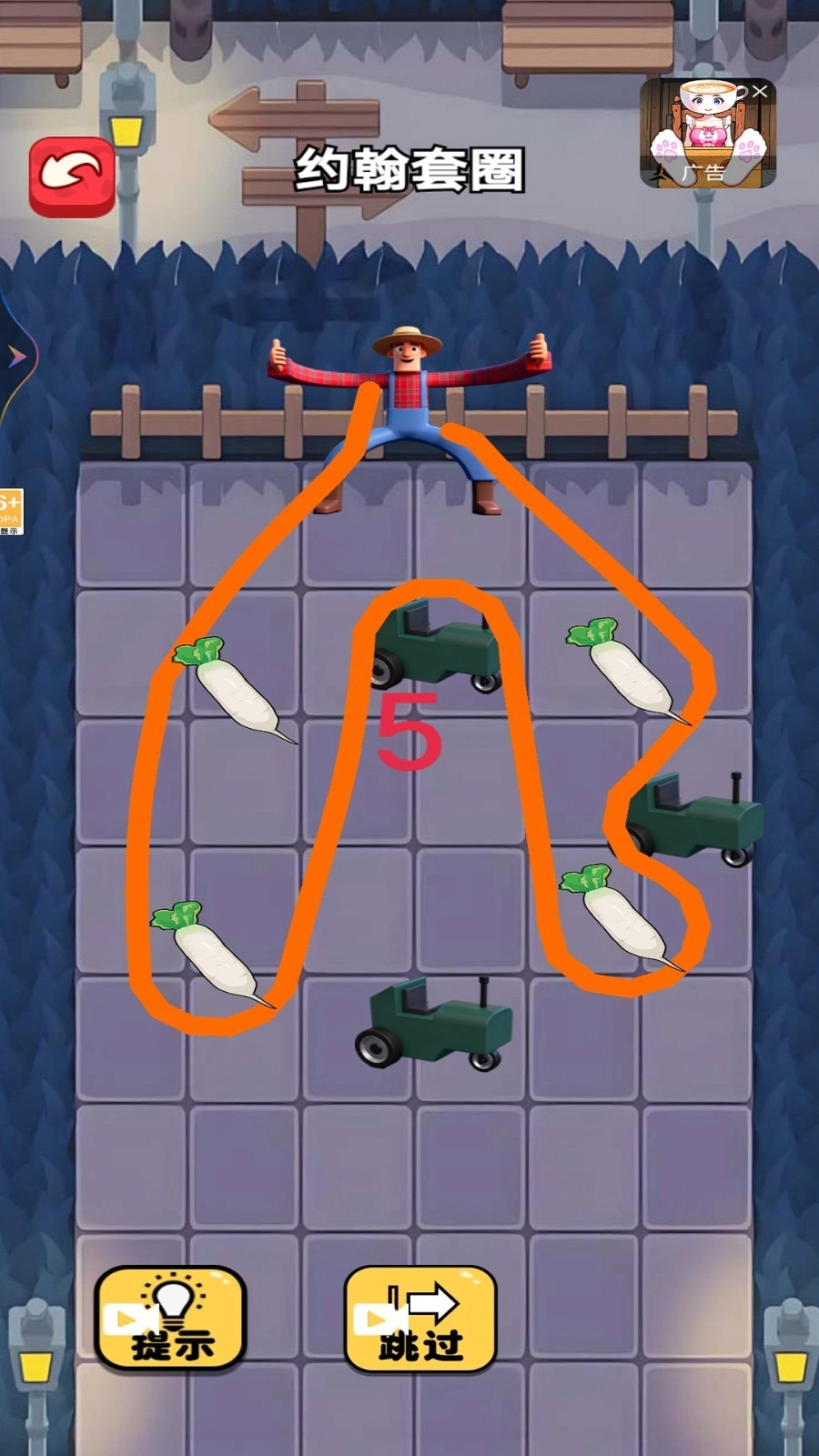 在连线时,必须把所有萝卜都完整地围起来,形成一个闭合的区域。要是漏掉了萝卜,导致路径没闭合,或者出现了违规连线的情况,那就得重新挑战这一关卡。
