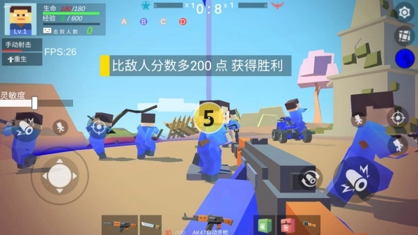 像素人战场是一款十分有趣的射击游戏,玩家在游戏里能够率领队伍投身枪战对抗,每个战场的场景都各有差异,玩家要在不同地图中进行极限射击,歼灭敌人并抢占更多区域,在枪林弹雨中迅速战斗,多种武器可直接解锁,搭配出适合自身的武器组合。