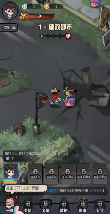 点击主角可以提升攻击能力,加快打怪速度,解锁新功能,还能强化主角的技能。