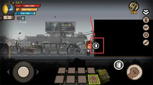 点击【任务】查看目标,通过开启大门探索新的区域,收集各类资源来应对末日环境,以此提升生存的几率。