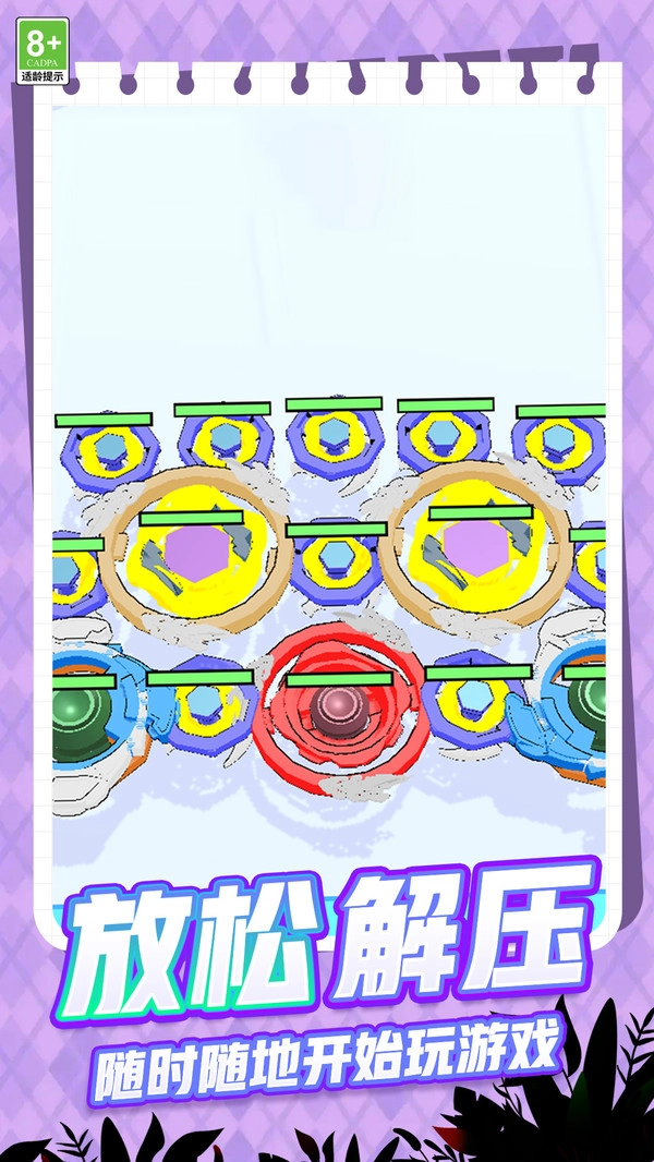 梦幻玩具乐园是一款集合成与竞技于一体的益智休闲陀螺游戏!玩家需要依靠敏捷的反应和精准的操作,把相同等级的陀螺旋转合并,解锁更高级的款式,持续挑战极限速度。这款游戏创新性地将合成玩法与竞技体验相结合,让你操控陀螺在竞技场里高速旋转、激烈碰撞,尽情享受独一无二的对抗乐趣。借助先进的物理引擎技术,陀螺的旋转效果真实灵动,每一次转动都趣味十足。还有上百种特色陀螺等着你来解锁合成,关卡目标也丰富多样,不管是利用碎片时间放松,还是挑战合成的极限,都能收获满满的快乐!